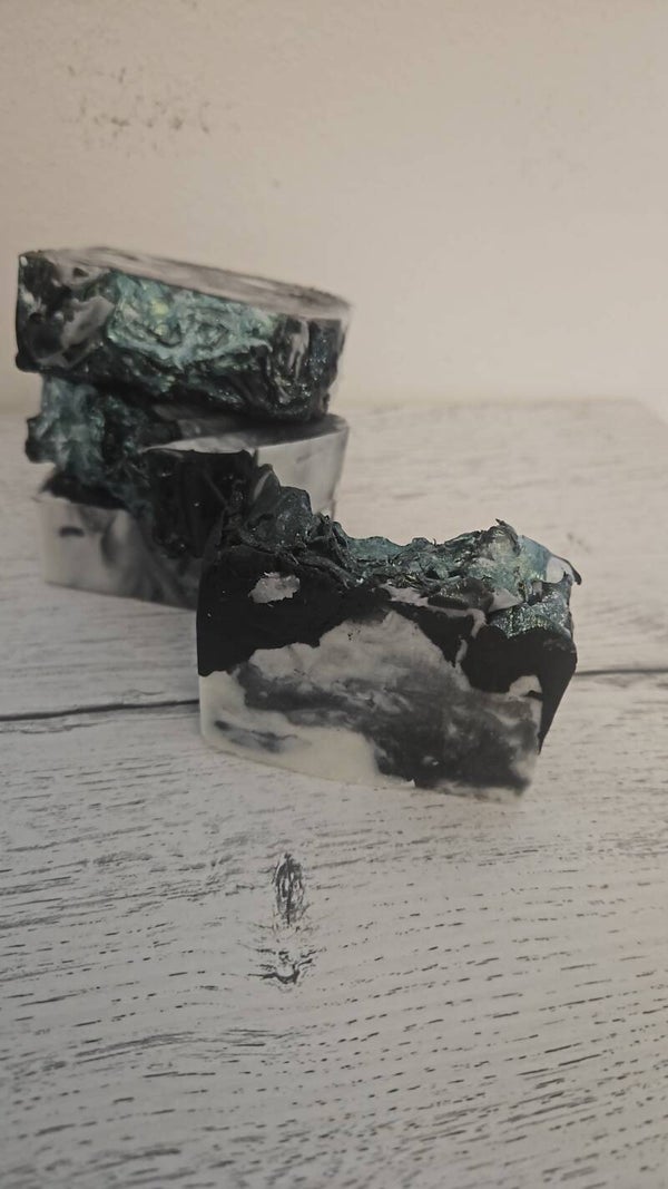 Mica und Aktivkohle verleihen der Seife ihre edle, leicht schimmernde Farbe und reinigen die Haut sanft.