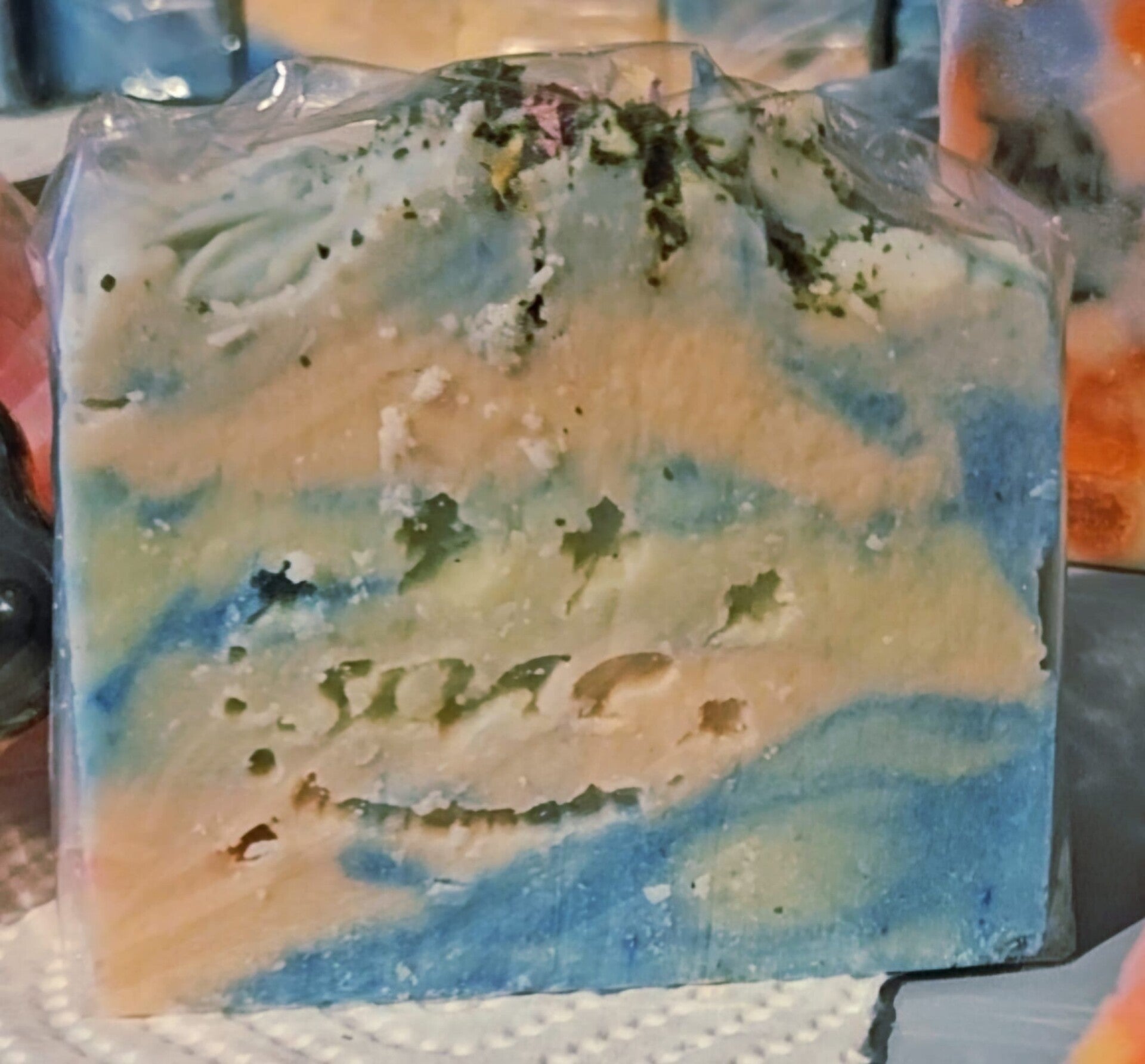 Handgemachte Seife mit Wasser,NaOH Olivenöl, Kokosöl, Sheabutter und Mandelöl.